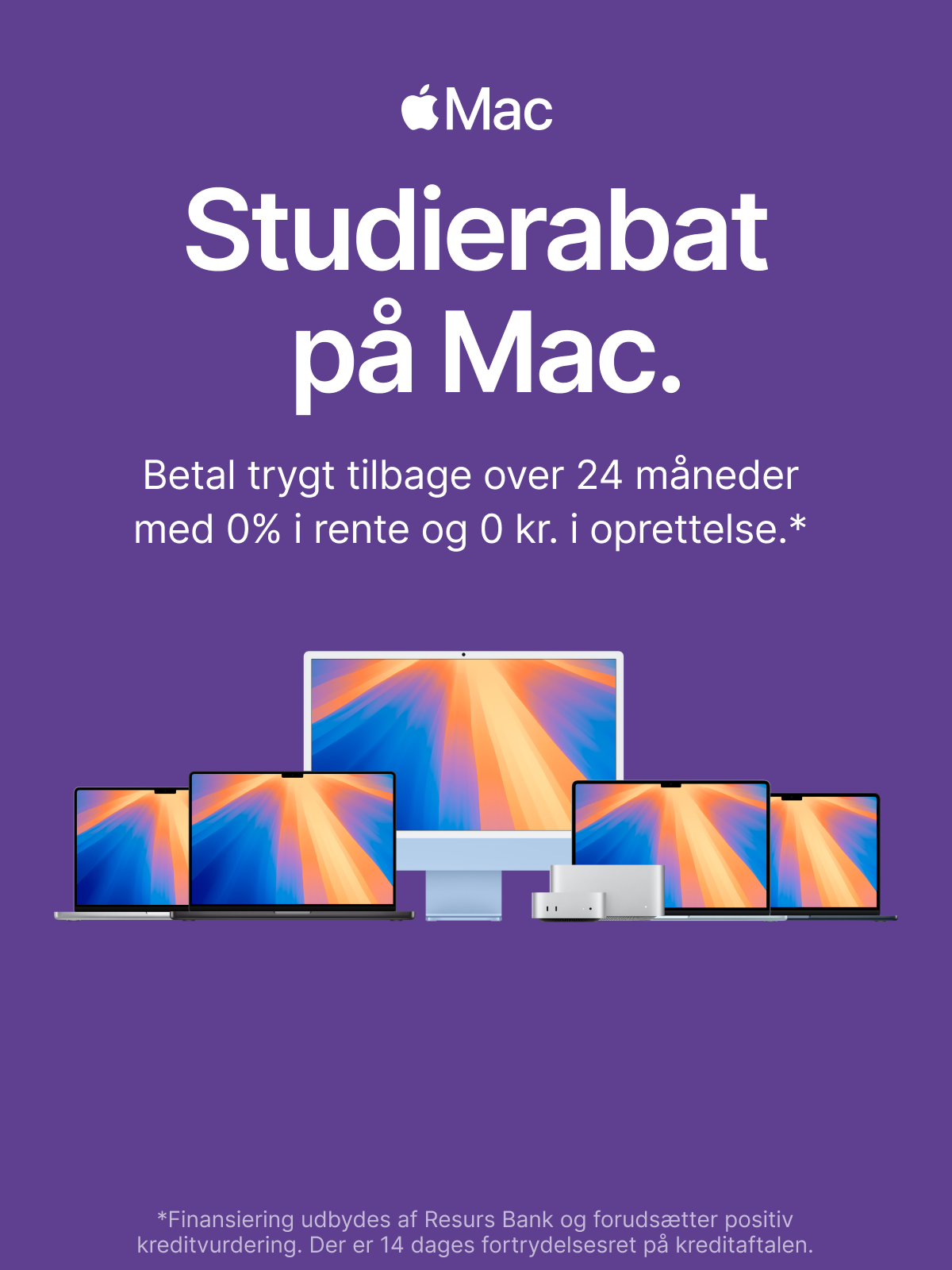 Køb din nye studie MacBook over 24 mdr. 0% i rente og 0 kr. i oprettelse.
