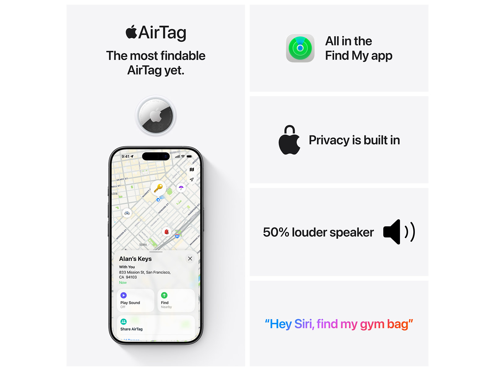 AirTag er udviklet med fokus på databeskyttelse og sikkerhed. Lokationsdata og historik gemmes aldrig på selve AirTag’en, og kommunikation med netværket sker anonymt og krypteret.