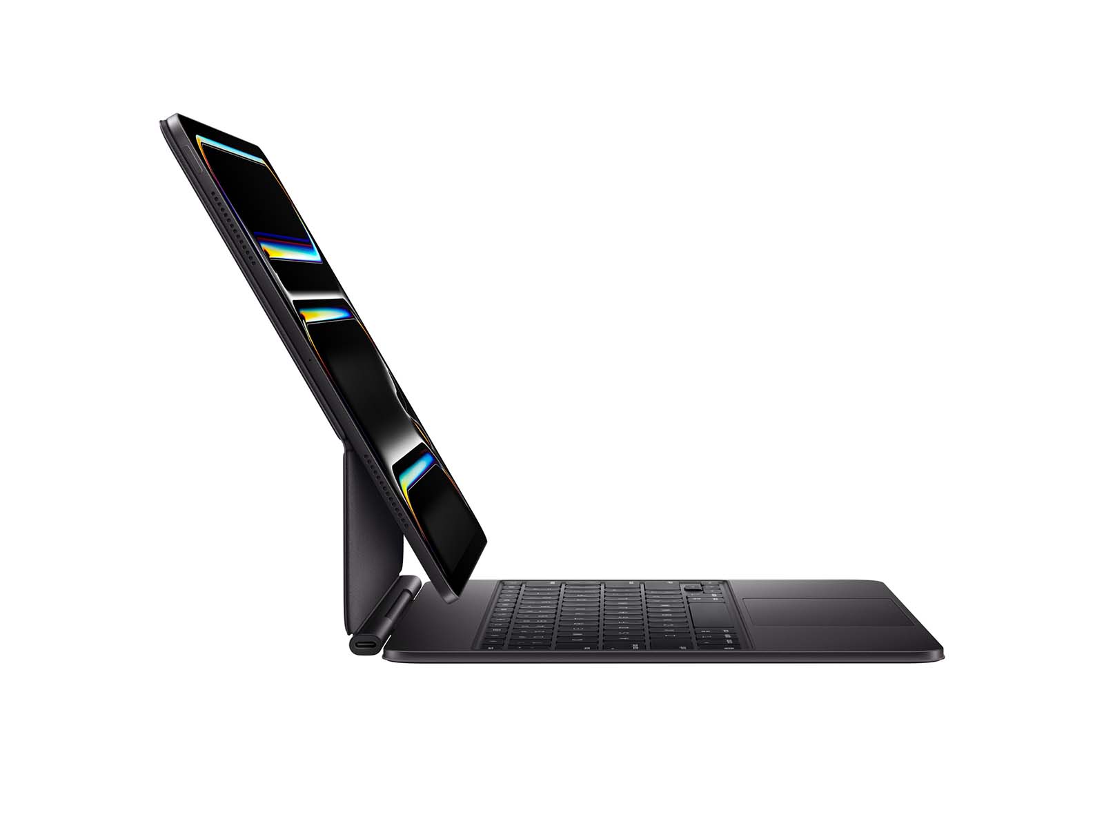 Magic Keyboard til iPad Pro har et tyndt og bærbart design med et svævende hængsel, der gør det nemt at justere synsvinklen. Tastaturet byder på baggrundsbelyste taster med en saksemekanisme og 1 mm vandring, hvilket sikrer en støjsvag og komfortabel skriveoplevelse.