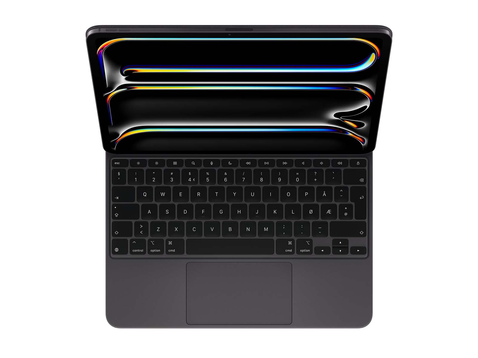 Magic Keyboard til iPad Pro har et slankt og bærbart nyt design med håndleds­støtte i aluminium. Det giver dig en fantastisk skrive­oplevelse og et hav af muligheder med pegefeltet. Tastaturet har en række med 14 funktions­taster, så du hurtigt kan få adgang til funktioner som skærmens lysstyrke, lydstyrke­knapperne og andre funktioner, samt et USB‑C-stik til pass‑through-opladning. Tastaturets svævende design gør, at du let kan justere iPad Pro i forskellige synsvinkler.