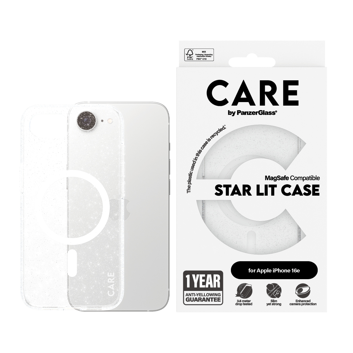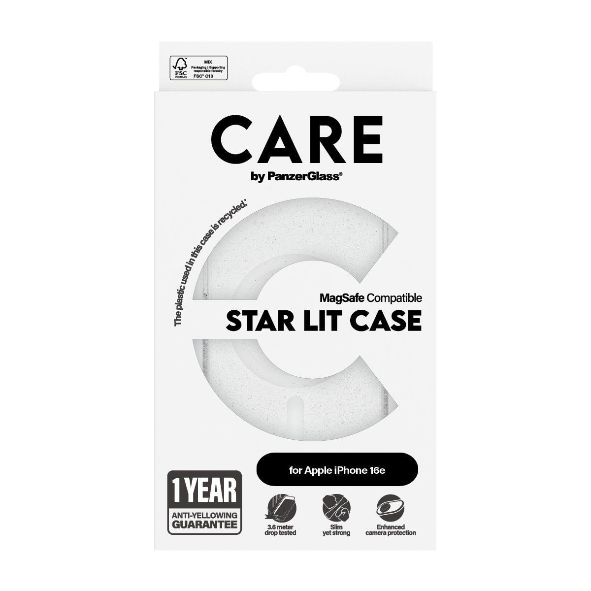 Tilbyder fænomenal og iøjnefaldende beskyttelse til den røde løber og de uforglemmelige glitrende nætter. Hvert hjørne og alle vinkler er drop-testet fra 4,8 meter. Star Lit-coveret, fremstillet af genanvendt plastik, er designet til trådløs opladning og er MagSafe-kompatibelt. Og det kommer med vores 1 års Anti-Gulning garanti – uden spørgsmål.