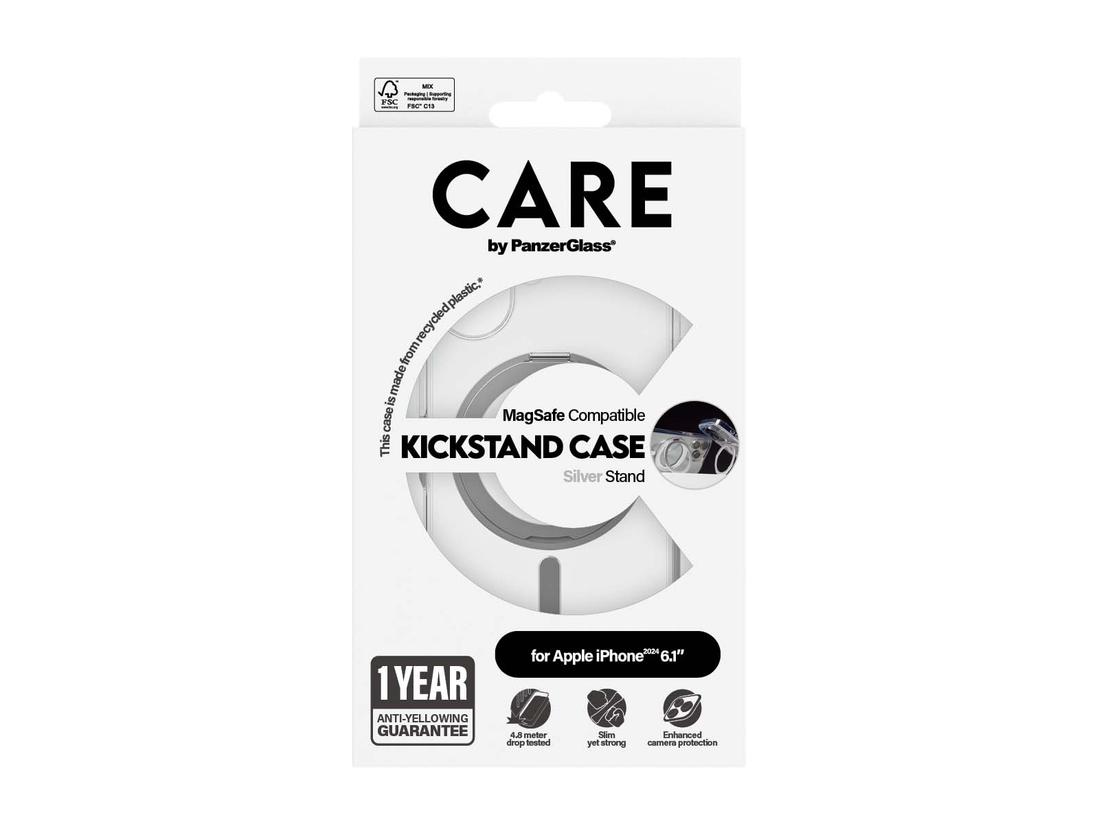 Med det gennemsigtige look og sølv detaljer giver Care by PanzerGlass® Feature Case din iPhone et moderne udtryk, samtidig med at det beskytter mod daglige stød og ridser. Den slanke profil gør, at din telefon stadig føles let og komfortabel i hånden.