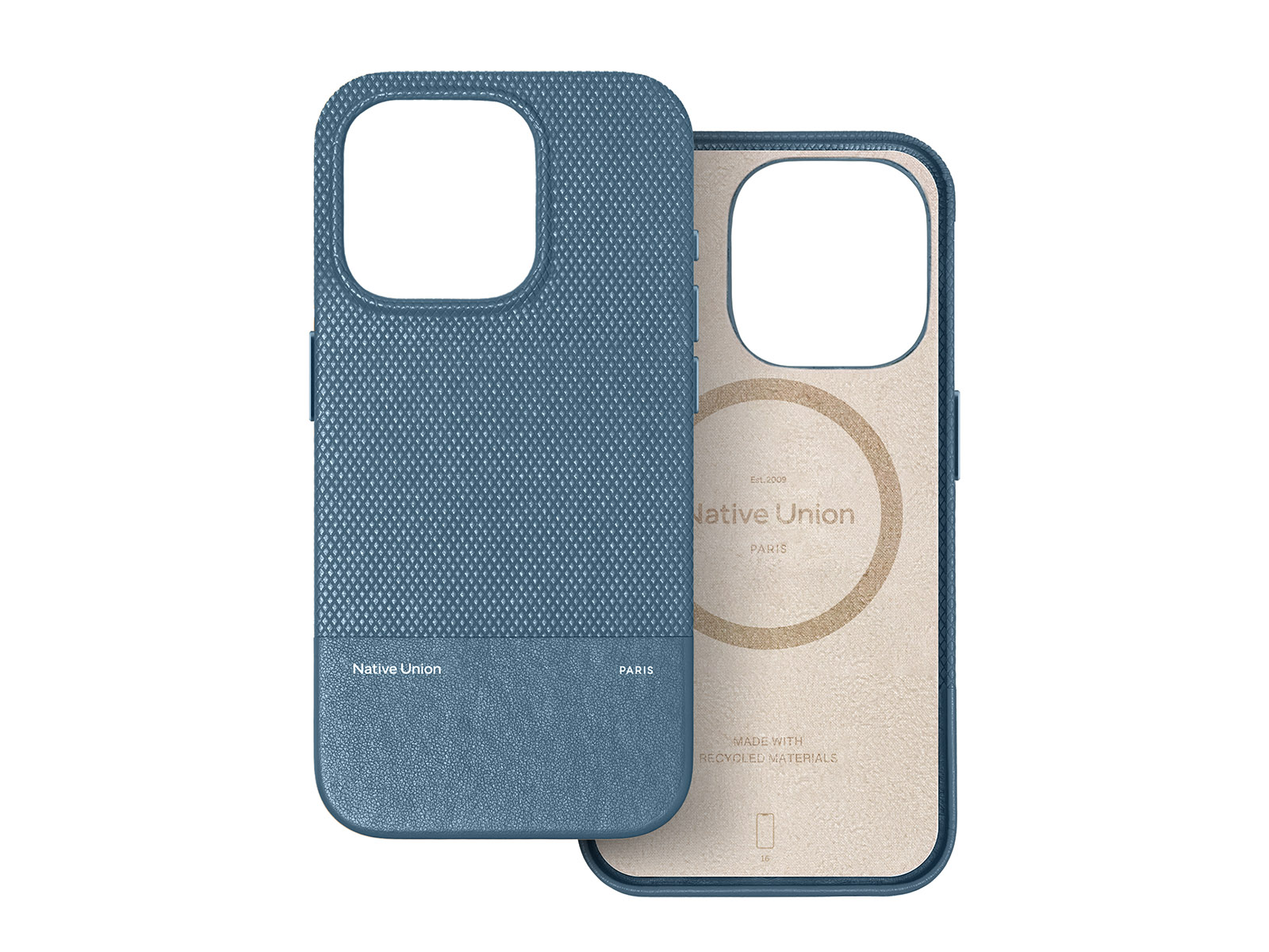 Et elegant og bæredygtigt cover til iPhone 16 Pro i farven Navy – med struktureret finish og MagSafe-kompatibilitet