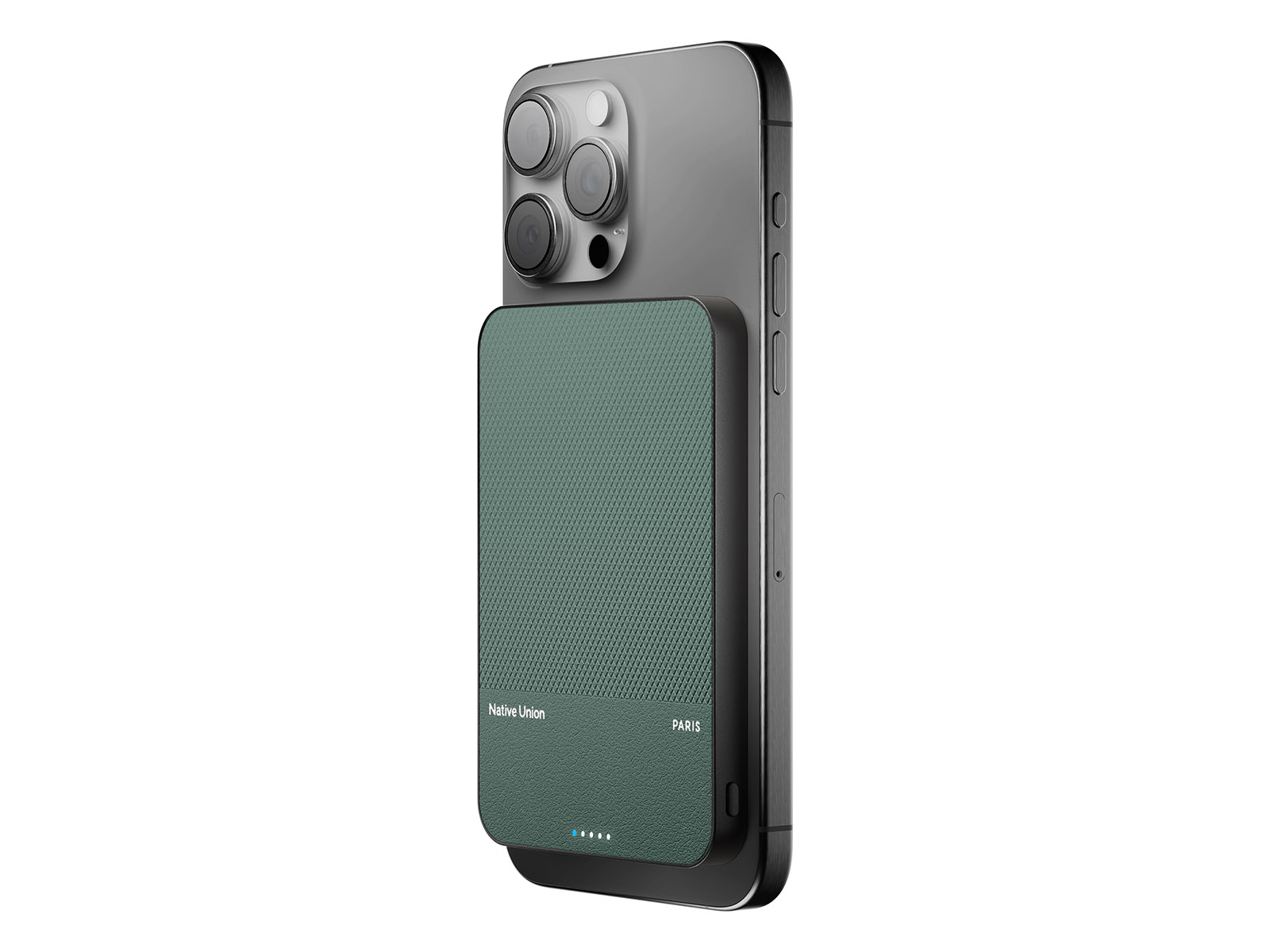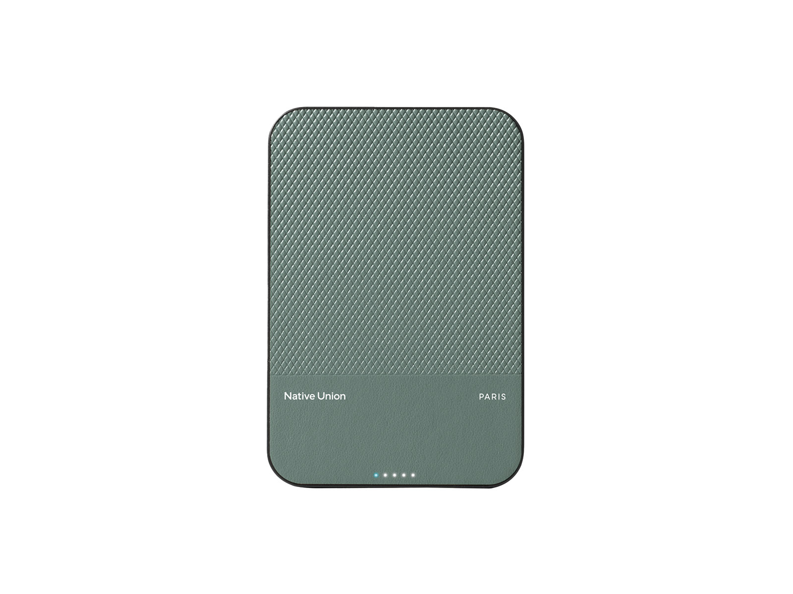 En stilfuld og bæredygtig magnetisk powerbank i Slate Green – designet til opladning med omtanke, både visuelt og funktionelt
