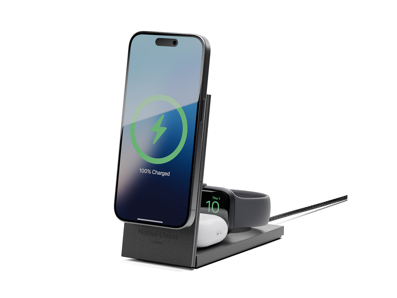 · Indbyggede opladere til AirPods (Qi) og Apple Watch