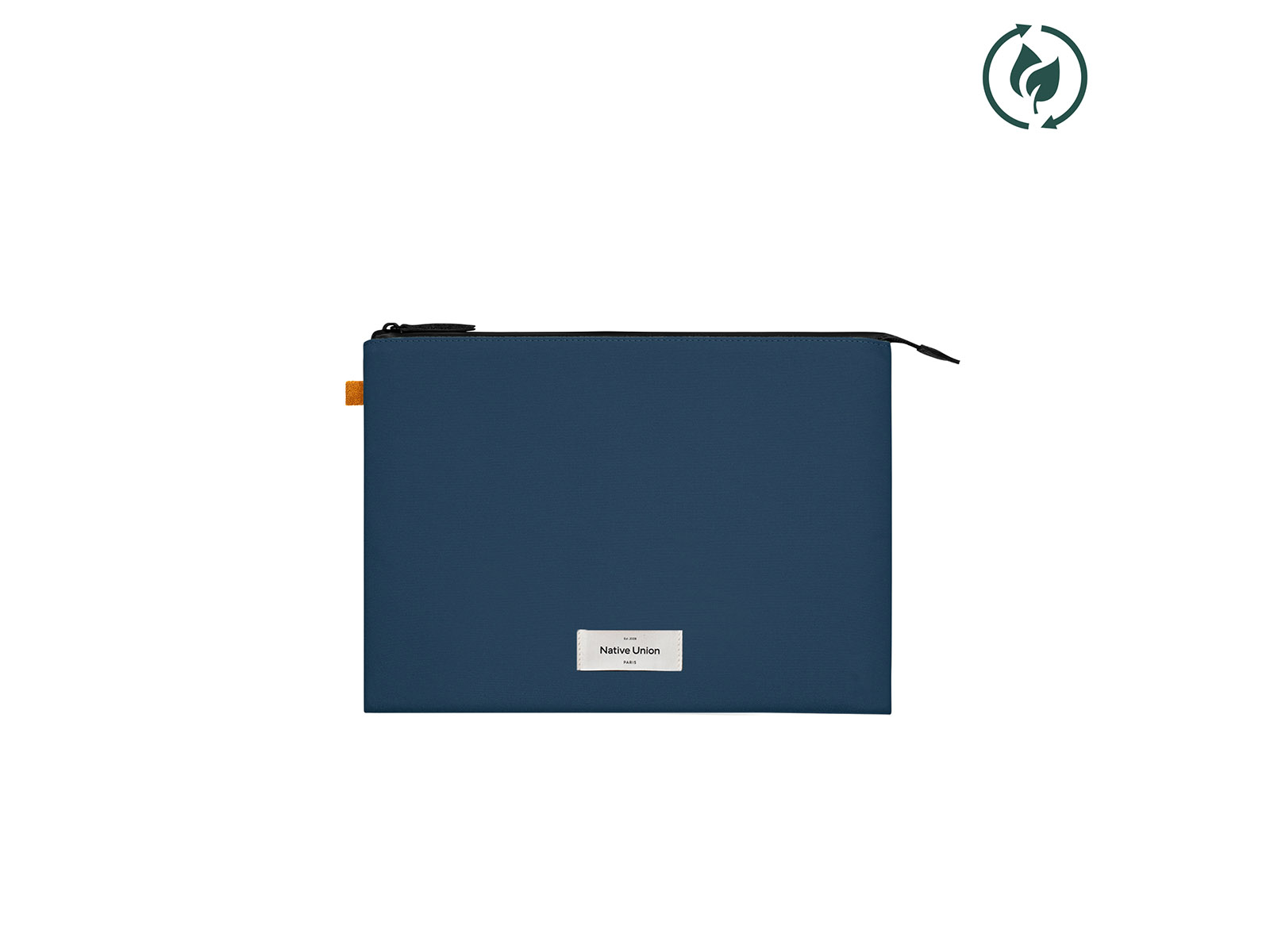En stilfuld og funktionel sleeve til MacBook 14" i farven Navy – ideel til arbejde på farten med bæredygtige materialer og smart opbevaring
