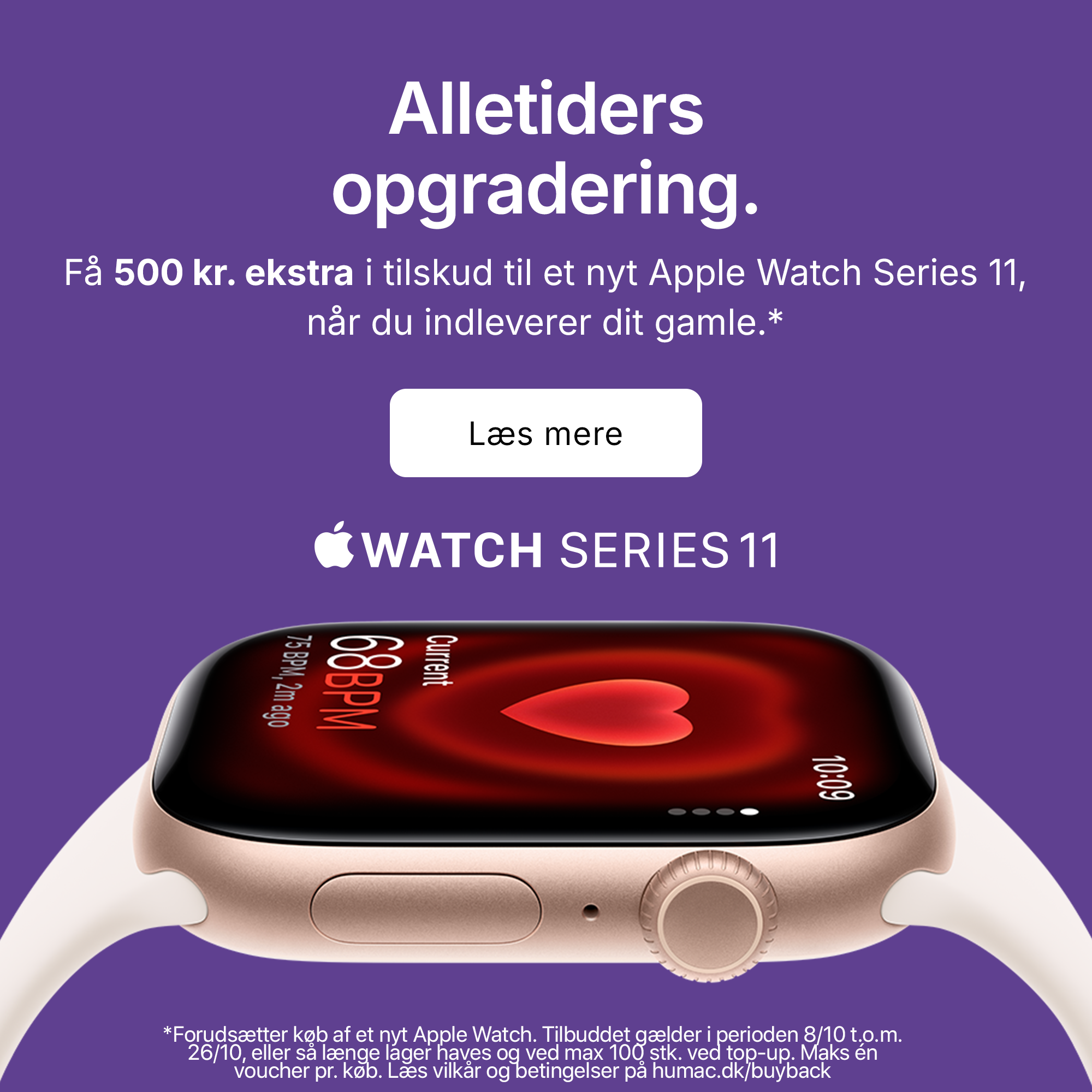Få vigtig viden om dit helbred. Vi præsenterer Apple Watch Series 11. Med notifikationer om forhøjet blodtryk, Søvnresultat og op til 24 timers batteritid.