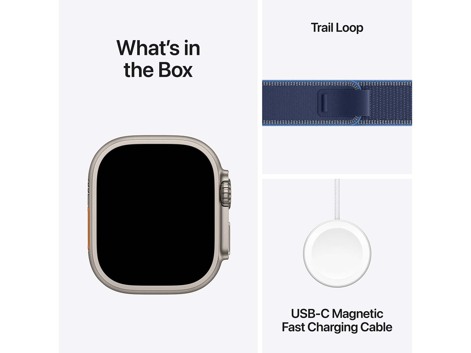 Anbefalet tilbehør til Apple Watch Ultra 3 G/C 49mm (Naturlig Titatium/Blå Trail Loop) - M/L